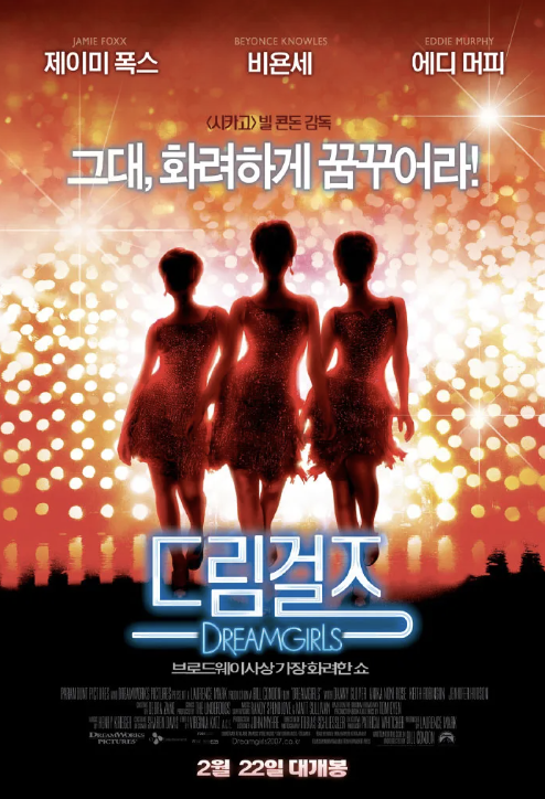 영화 드림걸즈는 이 영화는 1981년에 브로드웨이에서 초연된 동명의 뮤지컬을 원작으로 하며, 미국 흑인 음악의 황금기가 배경입니다. 1960년대 미국 디트로이트의 음악계에서 '드림스'라는 걸그룹의 성공과 좌절, 그리고 꿈을 향한 여정을 그립니다. 이야기는 에피 화이트(제니퍼 허드슨), 디나 존스(비욘세 놀즈), 로렐 로빈슨(아니카 노니 로즈)으로 구성된 세 명의 젊은 여성의 그룹 '더 드림스'의 시작으로부터 출발합니다.