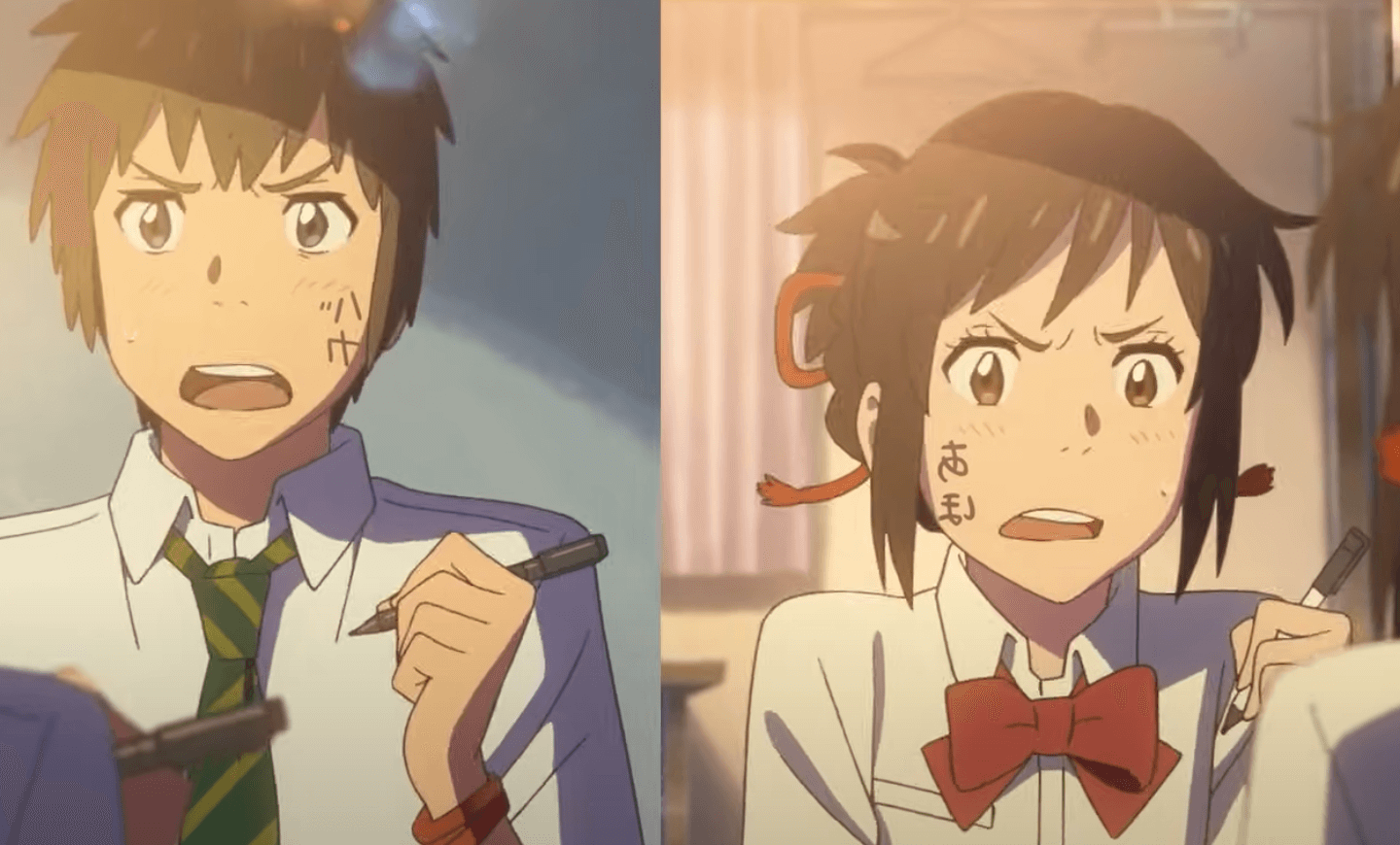 이후, 두 사람은 '황혼의 시간(카타와레도키)'에 마침내 서로를 직접 마주하게 됩니다. 그러나 시간이 얼마 남지 않았음을 깨달은 미츠하는 타키의 말을 듣고 마을 사람들을 대피시키려 합니다.