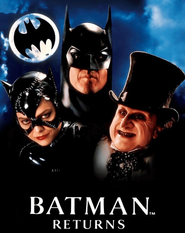 배트맨 리턴즈(Batman Returns, 1992) → 검은 망토 배트맨 vs 흰색 얼굴에 붉은 입술의 조커와 펭귄맨